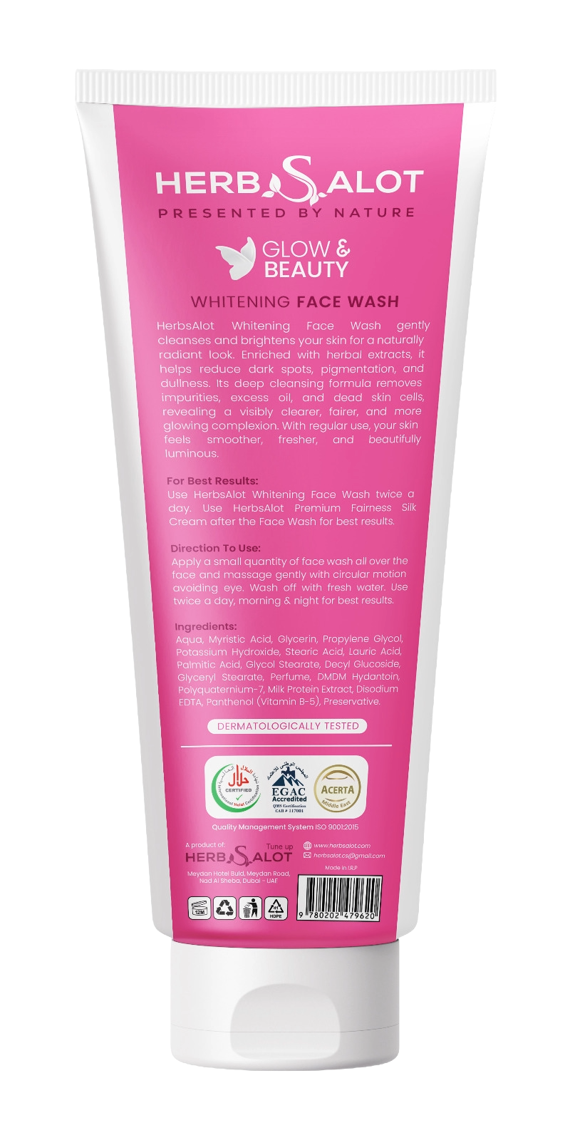 Give your skin the care it deserves with the Herbsalot Glow & Beauty Whitening Face Wash, enriched with milk extracts to help lighten dark spots and reveal a fresh, radiant complexion.