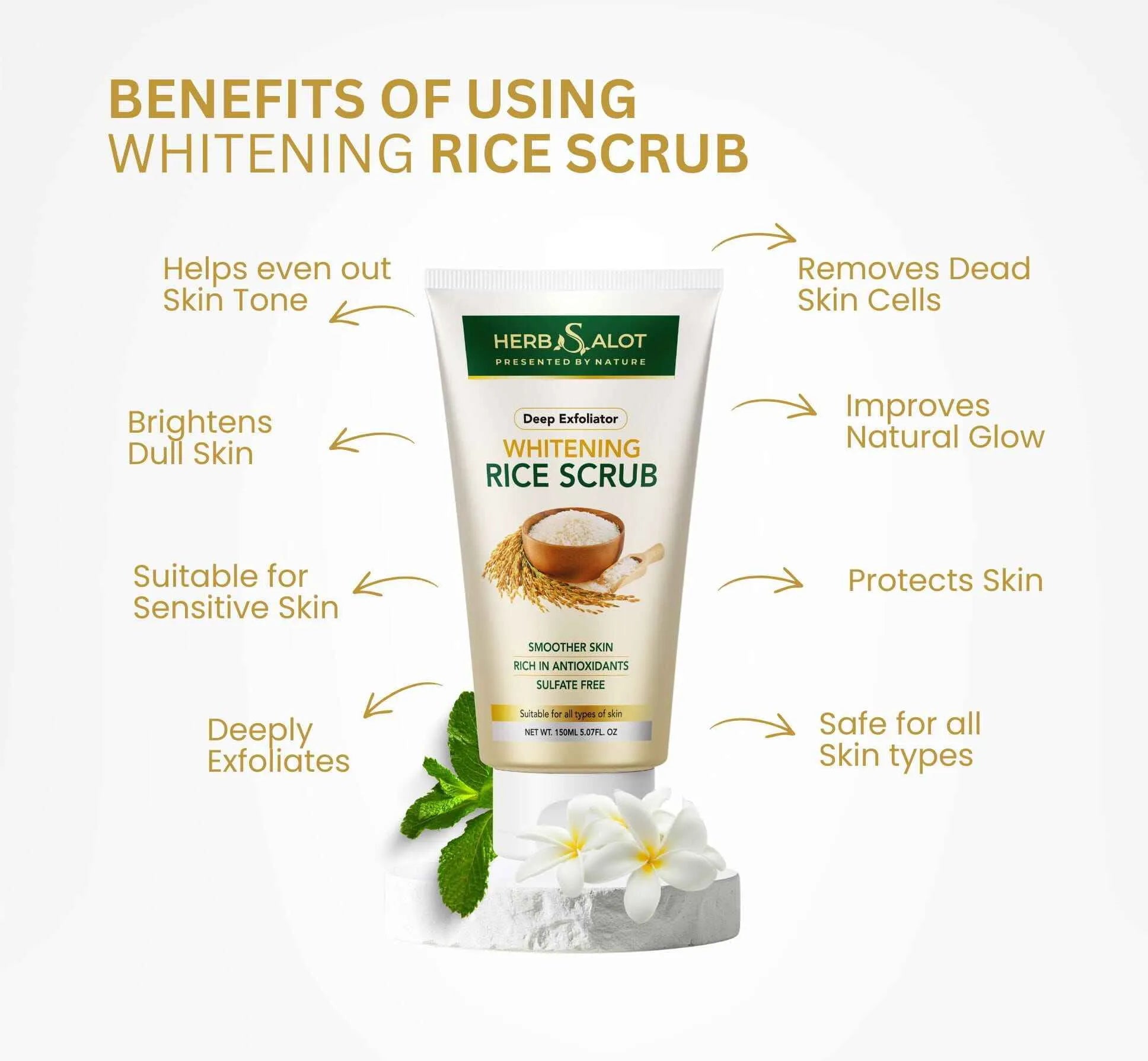 Herbsalot Whitening Rice Face Scrub 150ml – Smooth & Glowing Skin